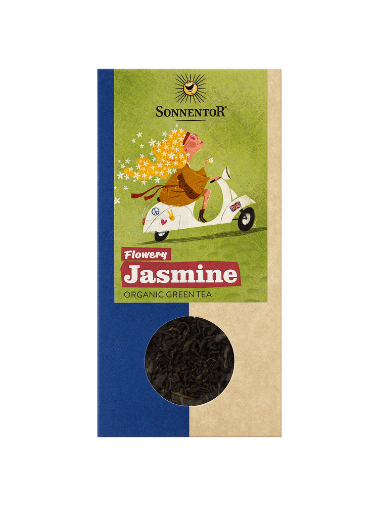 Зеленый чай с жасмином Sonnentor подкупает легким цветочным ароматом. У него также цветочный вкус, который дополняется сладковатой терпкой ноткой. Терпкие нюансы сохраняются и в послевкусии. Для приготовления этого элегантного напитка зеленый чай смешивается со свежими цветками жасмина, после чего просеивается когда цветы увядают. Таким образом, зеленый чай приобретает аромат жасминовых цветков.