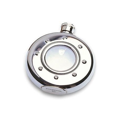 Фляга Nautilus из нержавеющей стали круглой формы с окошком, стилизованным под окно подлодки, которое позволяет контролировать уровень содержимого. Небольшой размер позволяет ей легко уместиться в кармане. Прочная винтовая пробка с прорезиненным дном не допустит проливки. Стильный аксессуар из нержавеющей стали, который всегда можно взять с собой.