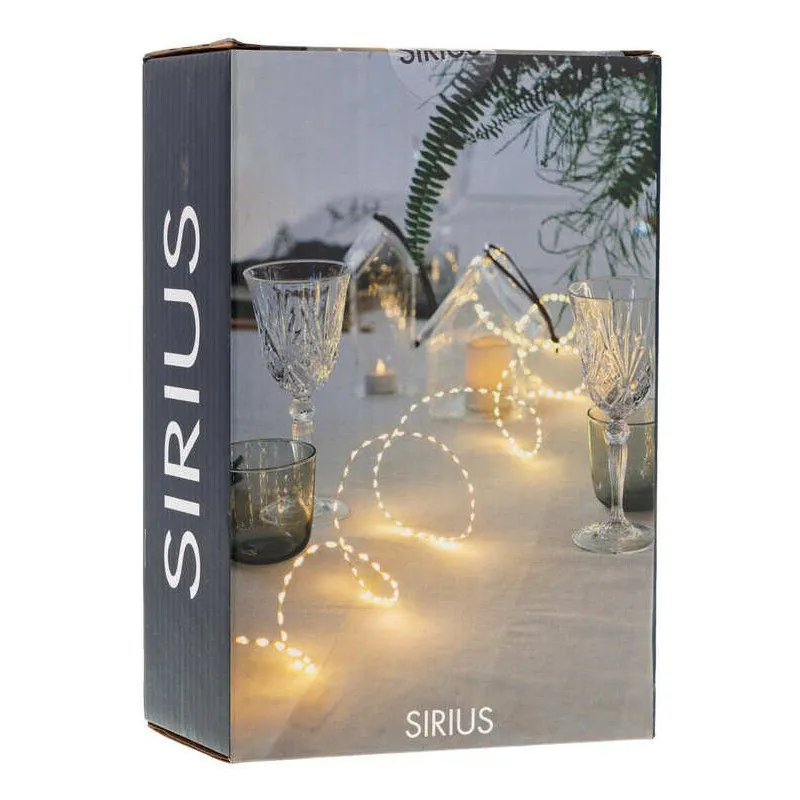Световая цепь Sirius Kiki имеет 300 очень маленьких тонких светодиодных фонарей и серебряную проволоку. Легко вписывается в хоть какой декор. Длина провода: 4 м. Может использоваться только в помещении. Поставляется вкл. трансформатор и удлинитель на 3 метра. Слоган датского бренда Sirius умещается в двух словах: Sparkling moments. Представляя себе магию сияющих элементов в декоре, можно ненароком погрузиться в воспоминания о домашних новогодних торжествах или вечерних посиделках на террасе, ведь гирлянды, свечи и фонарики сопровождают нас практически повсюду и придают особой атмосфере еще больший шарм.