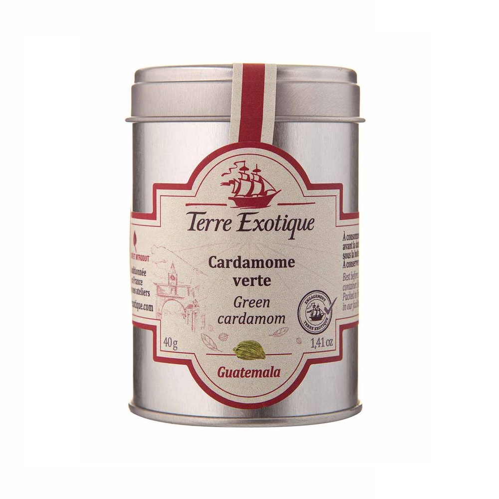 Terre Exotique – французский производитель, предлагающий специи премиум-класса, изготовленные из тщательно отобранных ингредиентов. Команда Terre Exotique лично выбирает травы, овощи и фрукты высочайшего качества по всему миру и упаковывает их в герметичные банки, что гарантирует сохранение свежести на длительное время. Производитель поддерживает связь с местными поставщиками для создания специй, способных передать аутентичный вкус и аромат традиционных блюд разных регионов мира. Использование зеленого кардамона имеет многовековую историю. В древности его ценили за лечебные свойства и применяли в традиционной медицине для улучшения пищеварения. Сегодня кардамон остается одной из самых ценных специй в мире. Благодаря сладковато-пряному аромату с нотками эвкалипта и лимона используется для усиления как сладкого, так и пикантного вкуса. Кардамон удачно дополняет горячие напитки, десерты, выпечку, мясные и рыбные блюда, придавая им утонченный пряный аромат. Специя подчеркивает остроту соусов, а в салатах создает свежий акцент, усиливающий естественный вкус зелени и овощей.
