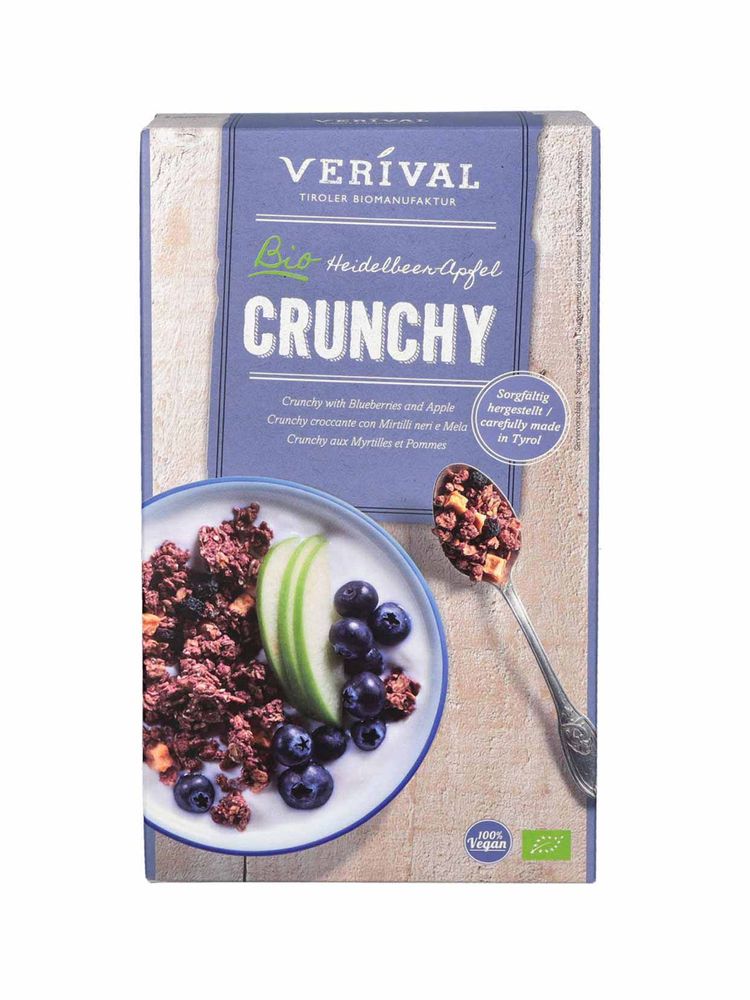 Не найти более полезный, вкусный и питательный завтрак чем органические кранчи с черникой и яблоком производства бренда "Verival" (Веривал), важным преимуществом которых является скорость в приготовлении.