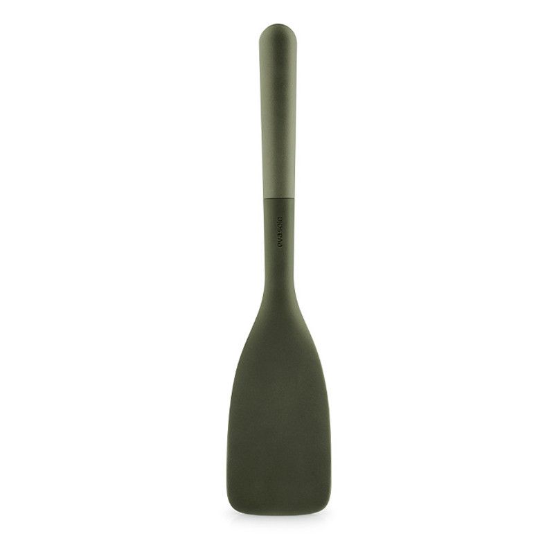 Универсальная лопатка для приготовления любимых блюд Eva Solo. Она покрыта силиконовым антипригарным покрытием, которое не пострадает от приготовления на высоких температурах. Тонкая форма подойдет как для переворачивания стейков, так и для блинов. Лопатка не повреждает покрытия и оставляет царапин. Очищать ее можно вручную или в посудомоечной машине.