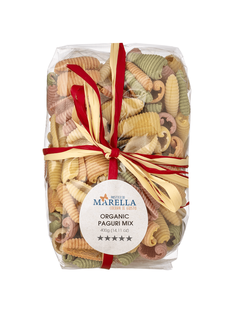 Pastificio Marella Паста Пагури Микс органическая 400 г – это изысканная итальянская паста ручной работы из региона Апулия, изготовленная из органической твердой пшеницы и натуральных овощных красителей. Ее уникальная форма и яркие цвета делают ее не только вкусным, но и эстетически привлекательным дополнением к любому блюду.