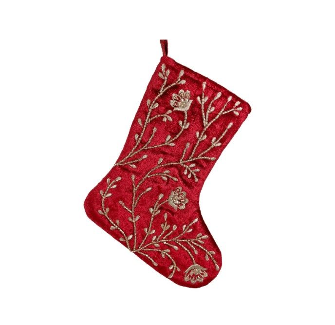 Носок красный с вышивкой золотого цвета 20см, Shishi