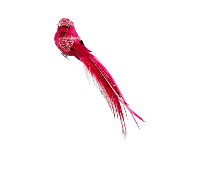 Новогоднее украшение Птица бархатная с перьями цвета бургунди 18см, Shishi