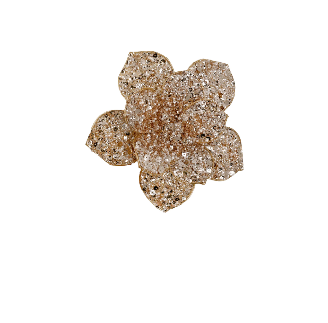 Новогоднее украшение Цветок магнолии из бисера цвета шампани 20см, Shishi