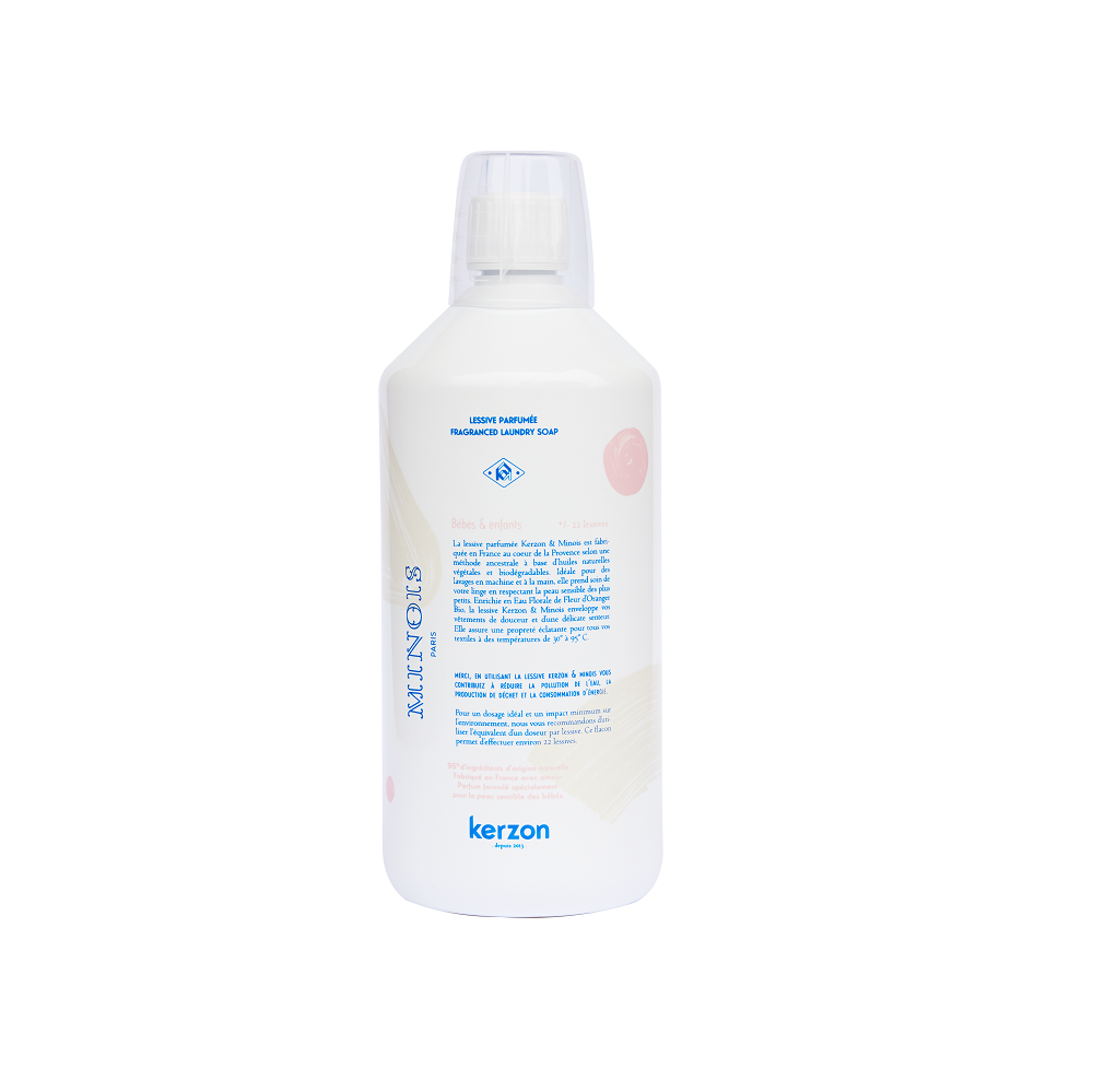 Обогащенный органической цветочной водой апельсина, стиральное средство Kerzon x Minois оборачивает вашу одежду и одежду ваших детей мягкостью и нежным, характерным ароматом Minois.