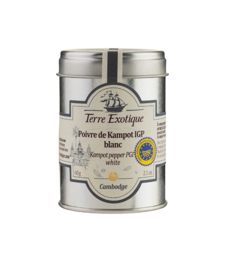 Чёрный перец Кампот PGI Terre Exotique — один из самых ценных перцев в мире, выращенный в Камбодже и защищённый географическим указанием. Обладает насыщенным и сложным ароматом с фруктовыми, ментоловыми и слегка копчёными нотами. Идеально подходит для мяса, соусов и морепродуктов, подчёркивая вкус блюд.