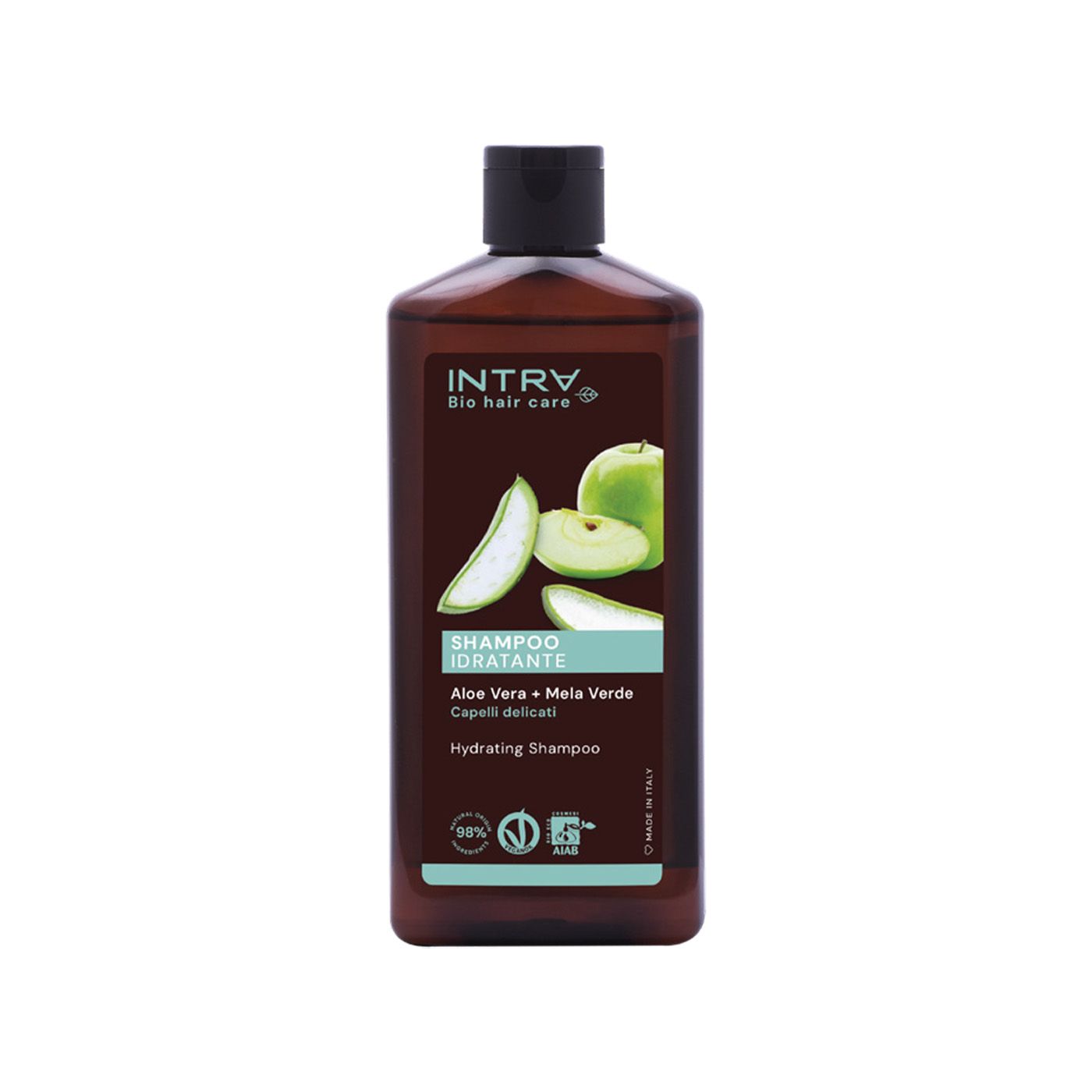 INTRA Шампунь ALOE&APPLE д/сухих волос органический и веганский увлажняющий с соком алоэ вера и экстрактом зеленого яблока увлажняет и питает волосы. Мягкая формула, содержащая более 98% ингредиентов натурального происхождения, особенно подходит для нежных волос и частого использования.