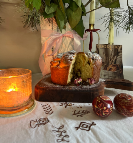 Скатерть разработана с нанесением трипольских символов, которые размещены в форме лица человека, где