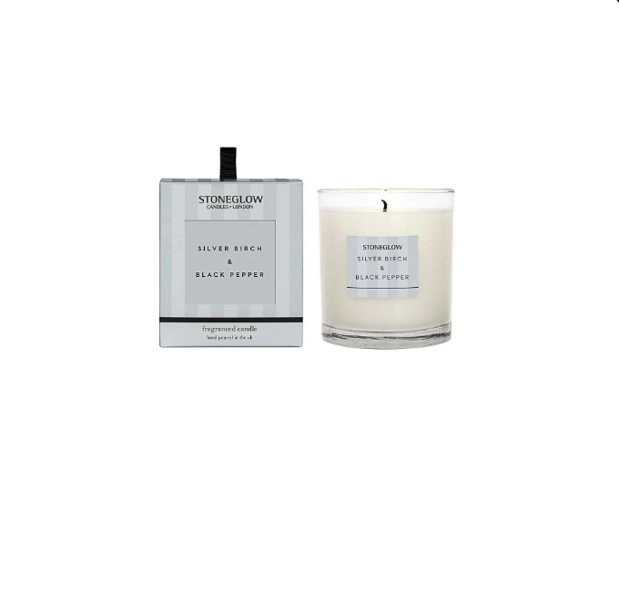 Silver Birch & Black Pepper – это ароматизированная свеча из коллекции Modern Classics от британского бренда Stoneglow, выполненная в стильном тумблере (boxed tumbler). Она имеет минеральный воск и обеспечивает чистое, ровное горение примерно до 40 часов ароматической атмосферы.