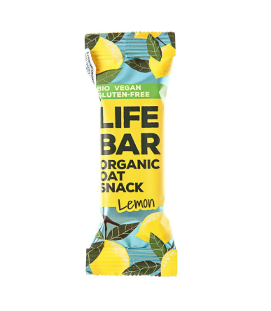 Батончик вівсяний «Лимон» органічний Lifebar виробництва Lifefood — смачний снек для веганів і прихильників правильного харчування.