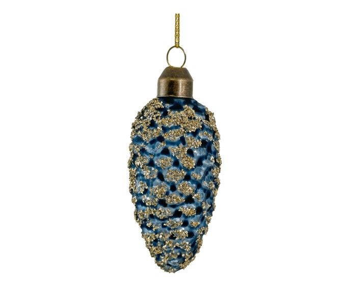Новорічна прикраса Шишка синя з блискітками 7см, Shishi