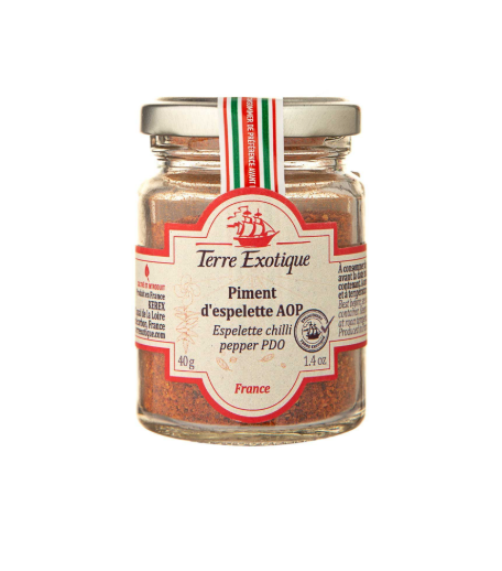 Перець чилі з Еспелетт виробництва бренду — вишукана спеція з тонким смаком і помірною гостротою. Має захищене географічне найменування (PDO), яке ідентифікує продукт з певної місцевості, гарантуючи автентичність та найвищу якість. Перці з Еспелетт висушують на сонці, після чого подрібнюють у ніжний порошок.