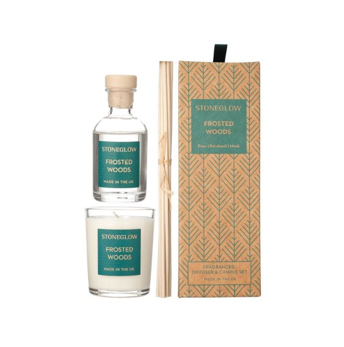Набір оформлений у тематичному стилі з нотами “свіжого зимового лісу” і чудово підходить для святкового подарунка або декору інтер’єру зимою.