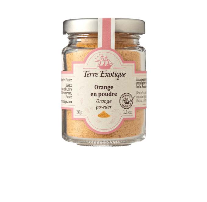 Французька компанія Terre Exotique спеціалізується на екзотичній кухні, випускаючи унікальні продукти. Пудра з апельсину має велике практичне застосування. Її можна використовувати як приправу, що надає цитрусового смаку, ароматизувати напої, робити екзотичні маринади, креативні соуси, удосконалювати рецепти кексів чи мафінів. Апельсинову органічну пудру отримують шляхом сушіння і подрібнення шкірки фрукта. Зазвичай у рецептах зазначена мінімальна кількість цього інгредієнта, тому невеликої баночки з тривалим терміном зберігання вистачить надовго.
