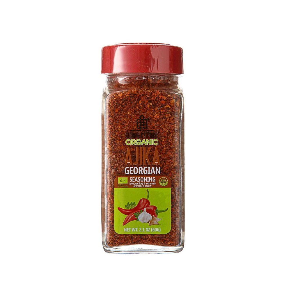 Суміш спецій «Аджика» Georgia`s Natural — автентична грузинська приправа, яка поєднує гострі й пряні нотки. Має у складі червоний мелений перець, насіння та свіже листя коріандру, насіння гуньби блакитної, сушений часник та сіль. Кожен компонент оброблений із дотриманням стандартів органічного виробництва.
