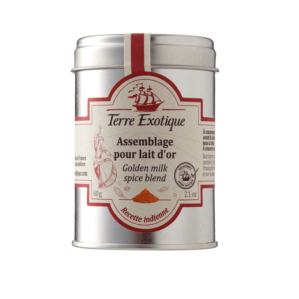 Суміш спецій «Золоте молоко» від Terre Exotique створена для приготування однойменного напою. Цей напій є здобутком аюрведичної кухні. Готується на основі молока та суміші спецій. Основним напрямом Terre Exotique є виробництво і постачання спецій, у тому числі рідкісних, таких як рожевий перець або сумах. Суміш спецій «Золоте молоко» складається з куркуми, цейлонської кориці, імбиру та чорного перцю. Такі інгредієнти надають їй золотистого кольору і пряного аромату. Куркума та імбир мають протизапальну дію, допомагають організму боротися зі стресом. Суміш не містить штучних добавок, ароматизаторів чи барвників, як й уся продукція бренду Terre Exotique. Щоб приготувати індійський напій «Золоте молоко», знадобиться склянка будь-якого молока. Далі потрібно закип'ятити його на середньому вогні й додати дві чайної ложки готової суміші спецій від Terre Exotique. Після цього треба гарно перемішати напій і відфільтрувати через дрібне сито. До готової рідини можна додати улюблений мед.