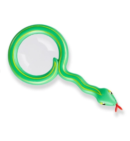 Это зелёное увеличительное стекло, выполненное в форме змейки для самых маленьких исследователей, увеличивает все предметы в два раза. С его помощью можно рассматривать насекомых, из чего состоят цветы и растения.